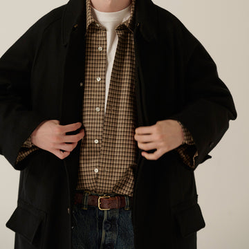 イギリスから直輸⼊したオークバークレザーの中 でも特に繊維の密度が⾼く、硬さのあるバット (お尻部分)を⽤い、⽇本の⽼舗ベルト専業⼯場 で仕⽴てたナローベルトです。 こちらの⾰はオークバークレザーに“クロスグレイ ン”と呼ばれるロシアンカーフを模したダイヤ上の 型押しが施されており仕上げ段階で⾰をより硬く し傷や跡に対する耐性を⾼めました。 バックルにはイギリスのアンティークベルトによ くみられるパイプ巻きバックルをライトゴールド にコーティングした別注品を採⽤。 HBジーンズ対応のサイズ6も展開しました。